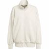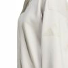 やわらかなピーチ加工のファブリックを使用したadidasのフルジップトップ。快適な着心地が魅力。ゆったりとしたシルエットと長めの着丈は、重ね着しやすく、リラックスしたカジュアルな装いにぴったり。スタンドカラーとフロントジップで、気温やシーンに応じた着こなしに対応できる。