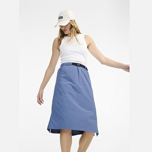 アウトドアシーンでも活躍するミドル丈スカートです。サイドポケットとバックル付きベルトがシンプルなデザインにアクセントをプラス。機能性とファッション性を兼備した一着です。 AIGLE FOR TOMORROW(再生素材や環境に配慮した生産背景を持つ商品) 撥水 UVカット(UPF40以上、紫外線カット率97%以上) ・原産国:中国 ・素材:ナイロン100%