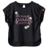 ダミス DA MISS フラワー刺繍タックTシャツ 半袖 フィットネス ウィメンズ 1534-1606-BLK