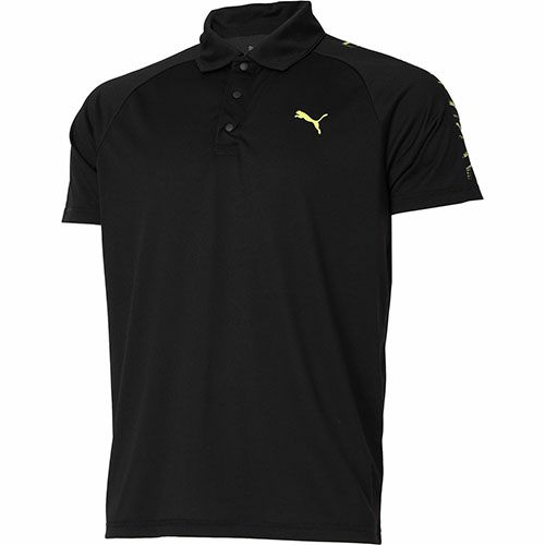 PUMA独自の吸水速乾DRYCELL機能のあるさらっとした素材を使い、肩には大胆にPUMAロゴを入れたトレーニング用ポロ。
