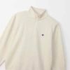 ◆Champion(チャンピオン)のスウェットシャツは、「ザ キング オブ スウェットシャツ」と評されるほど、世界中の多くのファンに愛されてきました。環境に配慮して生産されたサステナブルなアメリカ綿とリサイクルポリエステルをブレンドした裏毛素材のハーフジップスウェットシャツです。ポリエステル糸を芯としてその周りをコットンでカバーする特殊な糸を部分的に使用。肌触りの良いコットンの風合いを活かしつつ、コットン100%に比べて乾きやすく型くずれしにくいのが特長です。シーンやシーズンを選ばず着用できるユーティリティアイテムです。左胸にブランドカラーのCロゴ刺繍入り。