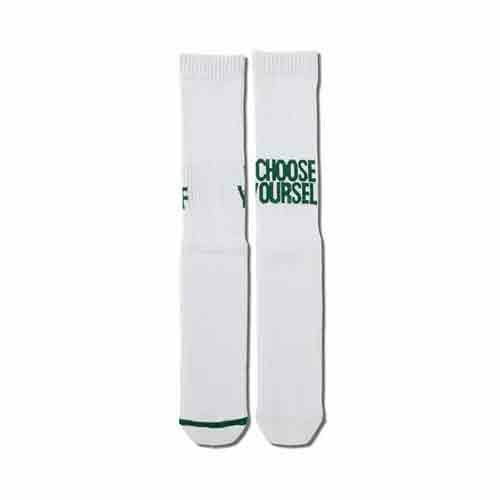 ◆背面にAKTRのタグライン「CHOOSE YOURSELF」を配置した、子供からモンスターまで誰でも履けるという触れ込みのソックス。オールドスクールなカラーリングと、足のサイズによって長さが変わるという一風変わった形が特徴。つま先にラインを配置し、表裏がわかりやすいデザインになっている。