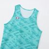 環境に配慮されたリサイクルポリエステル100%のメッシュ素材を使用したリバーシブルタンクです。表面はブラシで書き起こしたようなイメージの柄を昇華プリントで入れた総柄デザインで、裏面は胸にアメリカのバスケットボールシーンなどで見られるエンブレムをラバープリントで入れています。左裾のジョックタグはスポーツシーンにおける動きやすさを考慮した転写プリントです。同じ柄を使用したショーツ(C3-BB552)も展開しているので、セットアップでの着用もオススメです。