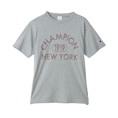 環境に配慮して生産されたサステナブルなアメリカ綿を100%使用した、柔らかく肌触りの良い天竺素材のショートスリーブTシャツです。Champion(チャンピオン)ブランドの歴史の中で、多くのカレッジやチームのウェアとして使用され、支持されてきたプリントデザインを現代に落とし込んだアイテムです。胸にブロック書体による「Champion 1919 NEW YORK(チャンピオン 1919 ニューヨーク)」のプリント入り。ホワイト、オックスフォードグレーのボディには染み込みプリント、その他のカラーのボディにはラバープリントを使用しています。オーセンティック アメリカン アスレチックウェアのチャンピオンらしいバインダーネック仕様もポイントです。