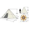 フライ: ポリエステルリップストップ210T(PU2,000mm)、インナー: ウォール=ポリエステル185T(通気性撥水加工)、メッシュ=ポリエステルノーシームメッシュ、フロア=ポリエステルOXF210D( PU3,000mm)、ポール:スチール(紛体塗装)
