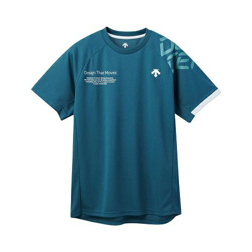 肩部分にDESCENTEグラフィックを配置した半袖バレーボールシャツです。