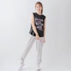 グラデーションロゴをプリントしたドロストパンツ。