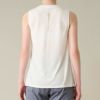◆キラリと光る箔プリントと前身頃のシャーリングがポイントのスリーブレストップ