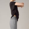 逆転ポーズやエクササイズでめくれ上がりが気になる時には、裾を結んでアレンジも可能です。