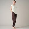 逆転ポーズやエクササイズでめくれ上がりが気になる時には、裾を結んでアレンジも可能です。