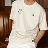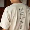 背面にフットボールをテーマにしたグラフィックをプリントした半袖Tシャツ。