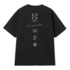 背面にフットボールをテーマにしたグラフィックをプリントした半袖Tシャツ。