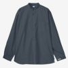 ◆タウンユースはもちろん、クルージングなど少しおめかししたいシーンでも重宝するプルオーバーシャツ。 ◆なめらかな肌触りのブロード生地には、環境配慮型の素材を採用。使用済みのペットボトルや繊維くずをリサイクルしたポリエステル繊維を使用しています。 綿100%生地に比べて乾きやすく、シワになりにくいのも魅力です。 ◆ややゆったりとしたシルエット。 スタンドカラーのデザインで、フロントは品のある貝調ボタンで仕上げました。 カジュアルアイテムながら、コーディネート次第できちんと感も演出できるアイテムです。 ◆原産国:中国 ◆素材:ECOPET ポリエステルコットンブロード(ポリエステル65%、綿35%) ◆サイズ(cm) XS:着丈/71、身幅/61、肩幅/48、袖丈/55、裾幅 /64、袖口幅/11 S:着丈/74、身幅/64、肩幅/50、袖丈/57、裾幅 /67、袖口幅/12 M:着丈/77、身幅/66、肩幅/52、袖丈/60、裾幅 /69、袖口幅/12 L:着丈/80、身幅/68、肩幅/54、袖丈/63、裾幅 /71、袖口幅/13 XL:着丈/82、身幅/70、肩幅/56、袖丈/64、裾幅 /73、袖口幅/13 ◆カラー:インクブラック