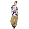 トップスとパンツは素材が異なりますが、どちらもやわらかな雰囲気の生地感に仕上げています。