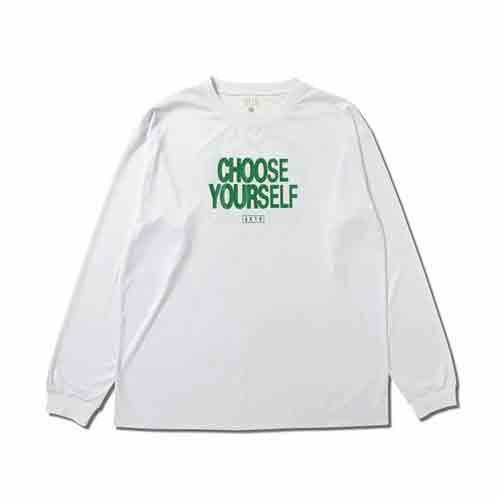 ◆AKTRのタグライン「CHOOSE YOURSELF」を「陰陽」で解釈したグラフィックを配置した長袖TEEシャツ。