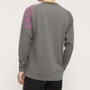 肩口のグラフィックプリントと袖口の配色がデザインアクセントになっています。