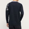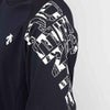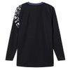 肩口のグラフィックプリントと袖口の配色がデザインアクセントになっています。