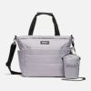 ◆光沢感のあるパディングが魅力の2wayトートバッグ ◆撥水性の高いリサイクルナイロンを使用した2 Wayトートバッグです。やや光沢感のあるリップストップナイロンのキルティング生地で、カジュアルにもきれいめなスタイリングにも合わせやすいデザイン。大容量のメインコンパートメントの中には、PCポケットと小物を仕訳けられるメッシュポケットを備えています。外側前面と背面にはそれぞれスナップボタンタイプのポケットを、両サイドには水筒や折り畳み傘を差し込んで口を絞れるポケットを配置。優れた収納力で、通勤通学や1泊2日の旅行にもおすすめです。同じキルティング生地を使用した、スマホなどを入れられるミニポーチ付き。 ◆素材:撥水性に優れたリサイクルナイロン100% ◆原産国:ベトナム ◆サイズ:W35.5cmxH34cmxD18cm / 18L ◆カラー:グレー リラ (004)