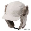 表地には防水透湿性に優れたナイロンオックス生地を採用。耳当て部分のポリエステル素材のファーは、リアルファーのような色合いと肌触り。毛足が長く、デッドエアをため込み保温性を高めています。縫い目はシームシーリング加工済み。耳当てはテープバックルで頭部に巻き上げることも可能。UVプロテクト(UPF50+、紫外線カット率95%以上)機能付き。