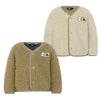 表面にはかさ高があり柔らかな毛足のボアフリース、肌面には滑らかな肌触りのマイクロフリースをボンディングした生地を採用しています。フロントはドットボタンで着脱がしやすく、袖口や裾、襟はすっきりとしたパイピング仕様です。