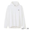 コンジュゲート糸による、やわらかなふくらみが特徴の素材は、ストレッチ性と軽さを兼ね備え、上半身の動きにスムーズに追従します。凹凸のある生地は肌離れがよく、汗をかいてもドライな着心地。襟元のボタンにより、首周りからの風の侵入を軽減します。UVプロテクト(UPF50+、紫外線カット率95%以上)機能付き。