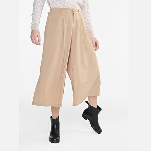 フレアレッグのデザインが、フェミニンな印象を演出するキュロットパンツです。吸水速乾生地で快適な履き心地。エレガントなトップスと合わせて、洗練された夏のスタイリングを楽しめるアイテムです。 吸水速乾 UVカット(UPF40以上、紫外線カット率97%以上) 伸縮性のあるバックウエストバンド ジップフライ フロントハンドポケット×2 バックウエストにAIGLEシグネチャー刺繍 AIGLE FOR TOMORROW(再生素材や環境に配慮した生産背景を持つ商品) ・原産国:カンボジア ・素材:リサイクルポリエステル86% ポリウレタン14%