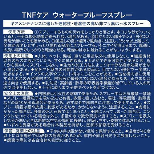 他の画像を見る ザ・ノース・フェイス THE NORTH FACE TNFケア ウォータープルーフスプレー NN32243-TB 販売価格 ¥ 1,980 税込 在庫切れ 詳細を見る お気に入りに登録する