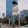 後ろポケットに付属のゴムバンドで丸めてコンパクトに収納可。高い防シワ性も兼ね備え、旅先でも便利な一着です。