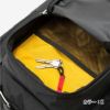 メインへのアクセスには、大きく開閉するU字型ファスナーを採用し、両サイドに荷物の仕分けに便利な大型の収納スペースを設けています。