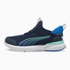 ◆キッズスニーカーの中でもプーマらしいパフォーマンスニーズに特化してデザインを投入した一足。 ◆4歳から8歳のお子様におすすめのサイズ。プーマの新しいSLIPTECHテクノロジーにより、手を使わずにシューズを脱ぎ履きでき、ユニークなステップインスタイルを演出します。アッパーはスリップオン仕様で、耐久性と足運びをサポートするトラクションが特徴。ミッドソールには、ProFoamと耐久性のあるラバーポッドがどんな路面でもトラクションを発揮します。伸縮性のあるネオプレンとウェビングが元気に動き回るお子様の足にぴったりフィットします。 ◆Profoam:軽量のEVA素材が着地時のクッションとなり、次の一歩を後押しします ◆通気性に優れたメッシュアッパー ◆EVAミッドソール ◆スリッポンスタイル ◆4歳から8歳のお子様におすすめのサイズ ◆重量:約138g(19cm) ◆素材: ミッドソール: 100% 合成繊維 中敷き: 100% テキスタイル アウトソール: 79% 合成繊維, 21% ラバー アッパー: 64% テキスタイル, 36% 合成繊維 ライニング: 100% テキスタイル ◆カラー:Club Navy-Hyperlink Blue