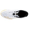 ◆軽量を極めたステップアップモデル!フィッティングとクッション性に優れたステップアップモデルが軽量になってリニューアル。履いた瞬間に感じる軽さと柔らかい履き心地。普段の練習を支える1足。 ・ソールの特徴:ノンマーキングソール ・エントリーモデル(初心者、ビギナー向け) ◆カラー:10:ホワイト×ゴールド×ブラック ◆素材:甲材:合成繊維×人工皮革 底材:合成底 ◆原産国:ベトナム製 ◆質量:約265g(27.0cm片方) ◆インソール:取り外し可 ◆シューズ幅:2.5E相当の方向け ◆シューレース長さ:22.5~23.5:110cm、24.0~27.0:120cm、27.5~30.5:130cm