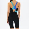 露出を抑えた小さな背穴。食い込みを軽減するために幅広の肩ストラップを採用しています。着脱時のもたつきが少なくズレにくく動きやすい、縫い込み式のカップ付き。クロッチ部分には肌あたりのよい柔らかな素材を使用しています。膝上までの4分丈です。ゆったりとしたフィット感で、着脱時もトレーニング時も快適性が持続します。