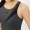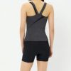 トップスは軽量かつ優れたストレッチ性の環境配慮型素材「Heather Stretch Pro(ヘザー・ストレッチ・プロ)」を採用。アシンメトリーのスキンストラップは肌あたりがよく、動きやすく、着脱もスムーズです。差し込みタイプのカップ付きで、これ一枚で完結。着脱もカンタンです。