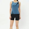 トップスは軽量かつ優れたストレッチ性の環境配慮型素材「Heather Stretch Pro(ヘザー・ストレッチ・プロ)」を採用。アシンメトリーのスキンストラップは肌あたりがよく、動きやすく、着脱もスムーズです。差し込みタイプのカップ付きで、これ一枚で完結。着脱もカンタンです。