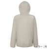 衣服内のムレを排出するベンチレーションは、生地の切替を利用したシンプルな構造で、背中と脇下に採用。さらに、ベンチレーションを兼ねる左右のファスナー付きポケットを装備し、ウエア全体の通気コントロール力を向上させています。フード裏に収納できるポケッタブル仕様で、コンパクトな携行が可能。