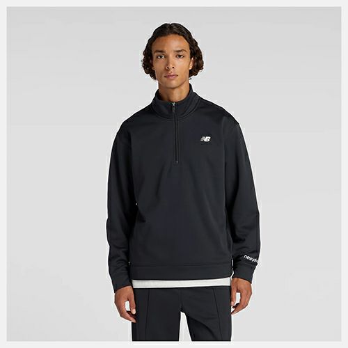 ニューバランス New Balance ダブルニット クォーター ジップ プルオーバー 裏起毛 長袖 ユニセックス AMT53170-BK