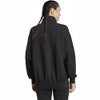 やわらかなピーチ加工のファブリックを使用したadidasのフルジップトップ。快適な着心地が魅力。ゆったりとしたシルエットと長めの着丈は、重ね着しやすく、リラックスしたカジュアルな装いにぴったり。スタンドカラーとフロントジップで、気温やシーンに応じた着こなしに対応できる。