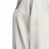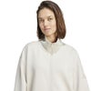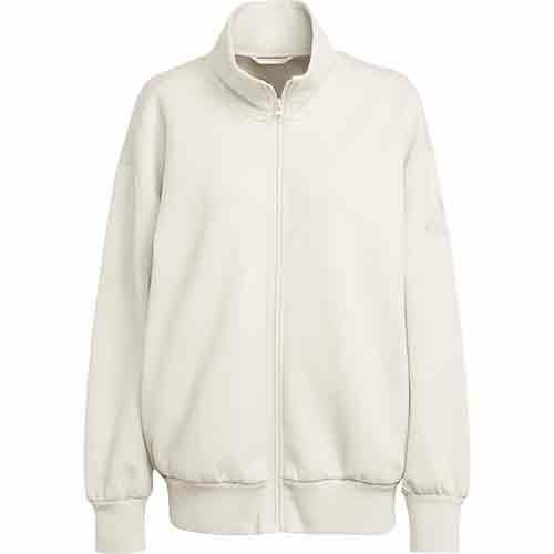 やわらかなピーチ加工のファブリックを使用したadidasのフルジップトップ。快適な着心地が魅力。ゆったりとしたシルエットと長めの着丈は、重ね着しやすく、リラックスしたカジュアルな装いにぴったり。スタンドカラーとフロントジップで、気温やシーンに応じた着こなしに対応できる。