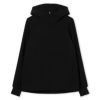 シンプルでクリーンなイメージのミニマルデザインのフード付きジャケット。