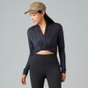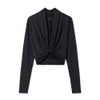 カシュクール風のクロスオーバーデザインが特徴的なクロップドTシャツ。