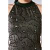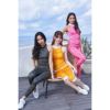 ◆首元でリボンを結ぶホルターネックデザインロングトップス