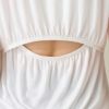 襟ぐりは胸元の露出が少ないボートネック。
