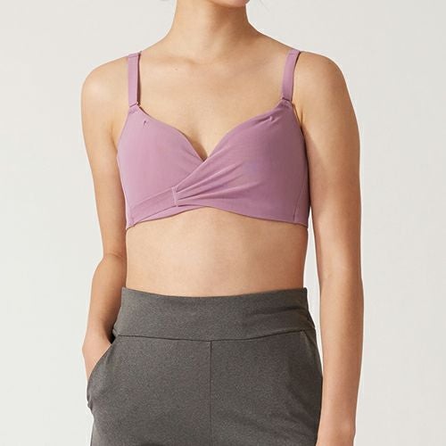 フロントクロス構造を日常使いのブラへ適用。カップの上から、通気性が良く弾性のあるメッシュ生地をクロス状に配置することで、スポーツブラ特有の圧迫感を軽減。フロントクロス構造で得られるサポート力を普段使いのブラへ付加したモデルです。